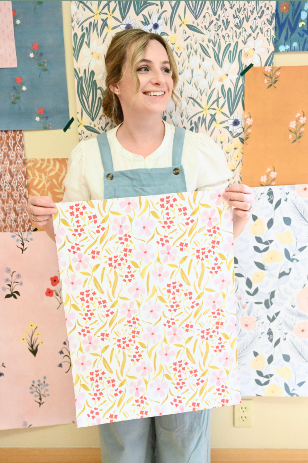 Megan Kelso is an artist who creates patterns for interior textiles and wallpaper. She hand-paints designs in delicate prints and joyful palettes, often creating floral and geometric patterns. She is most inspired by her love of natural botanical forms and the warmth and comfort of traditional folk textiles.